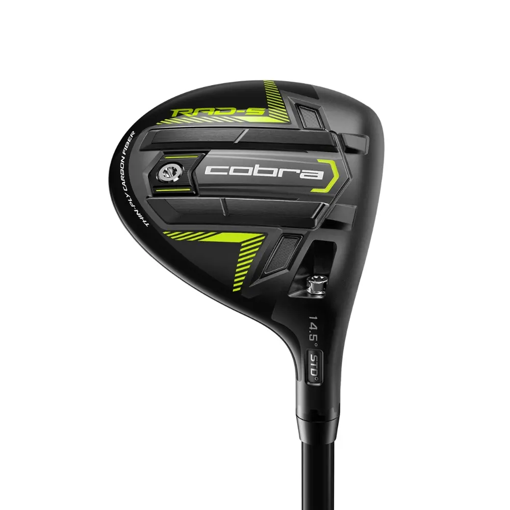 The Cobra RADSPEED-S Fairway Wood is engineered for golfers seeking a balance of ultra-low spin, high launch, and forgiveness. It utilises a front-biased RAD weighting system, consisting of two 8-gram internal front weights and a 7-gram back weight, to optimise ball flight and speed. The club’s construction features a thin-ply carbon crown that is 30% thinner and 6 grams lighter than traditional materials, allowing weight to be moved forward to further increase speed and lower spin.