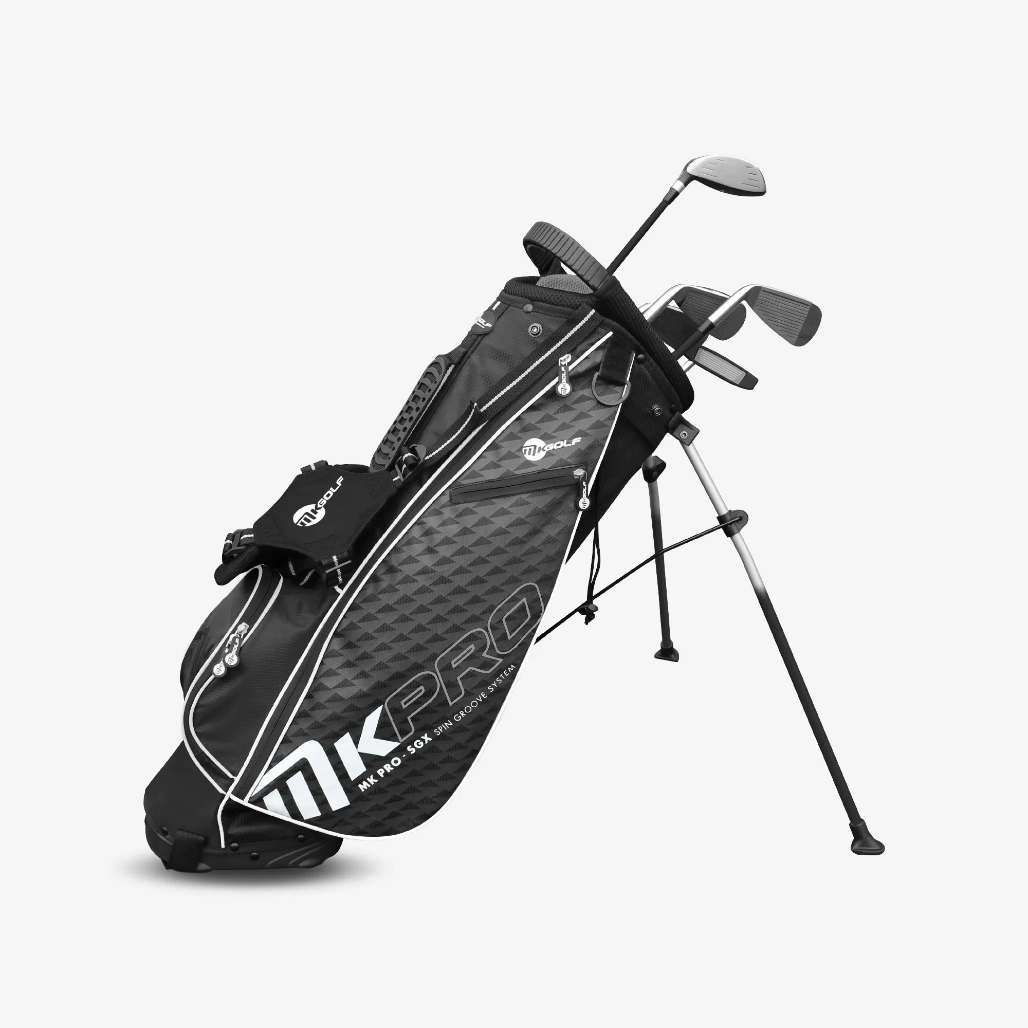 Comprising a low profile fairway wood to get the game off to a flying start, a range of irons to master the course and a wedge and putter for those duties around the greens. The stand bag is colour co-ordinated and packed with dazzling detail and a build quality second to none.