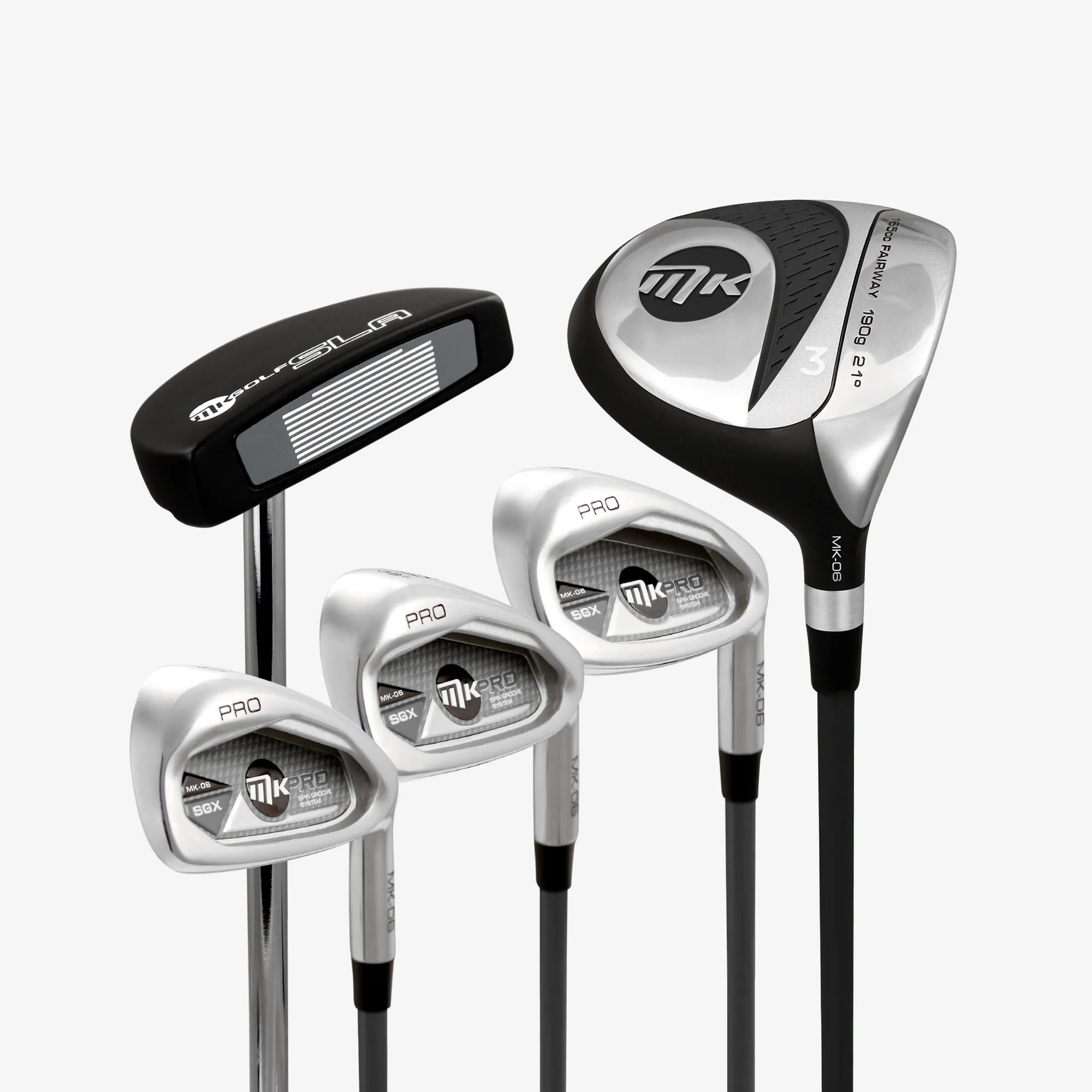 The set comes with a colour co-ordinated Stand Bag, Fairway Metal Wood, 6 & 8 Irons, Pitching Wedge and SLA Putter.