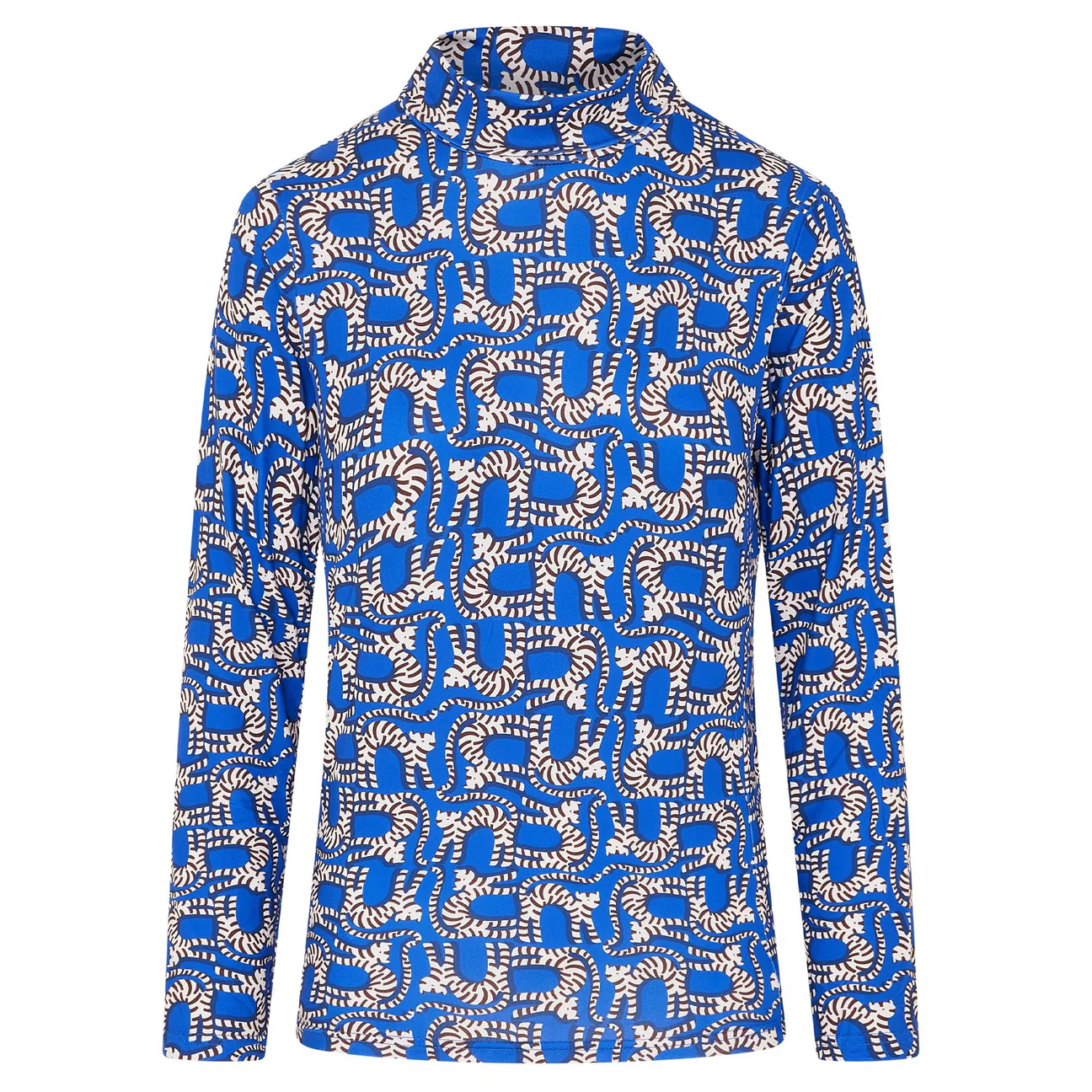 Embrace the cooler conditions on the golf course with the Swing Out Sister Shadow ladies golf roll neck., an essential top that is the perfect fusion of sleek, modern style and essential warmth, designed to keep you comfortable whatever the conditions. Constructed from a soft, high-stretch technical fabric that is both breathable & moisture wicking, the Shadow feels incredibly comfortable against the skin whilst the roll neck collar provides elevated levels of warmth and protection from chilly winds. Finished with a striking all-over seasonal pattern, the Shadow can be worn as a base layer or a standalone piece ensuring it will become a key addition to any cold-weather golf wardrobe this season